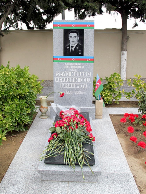 Azərbaycanın Milli Qəhrəmanı Mübariz İbrahimovun torpaqlarımızın müdafiəsi uğrunda canından keçərək şəhidlik zirvəsinə yüksəlməsinin ildönümündə hərbi qulluqçular igidimizin məzarını ziyarət edib, üzərinə gül dəstələri düzüblər.