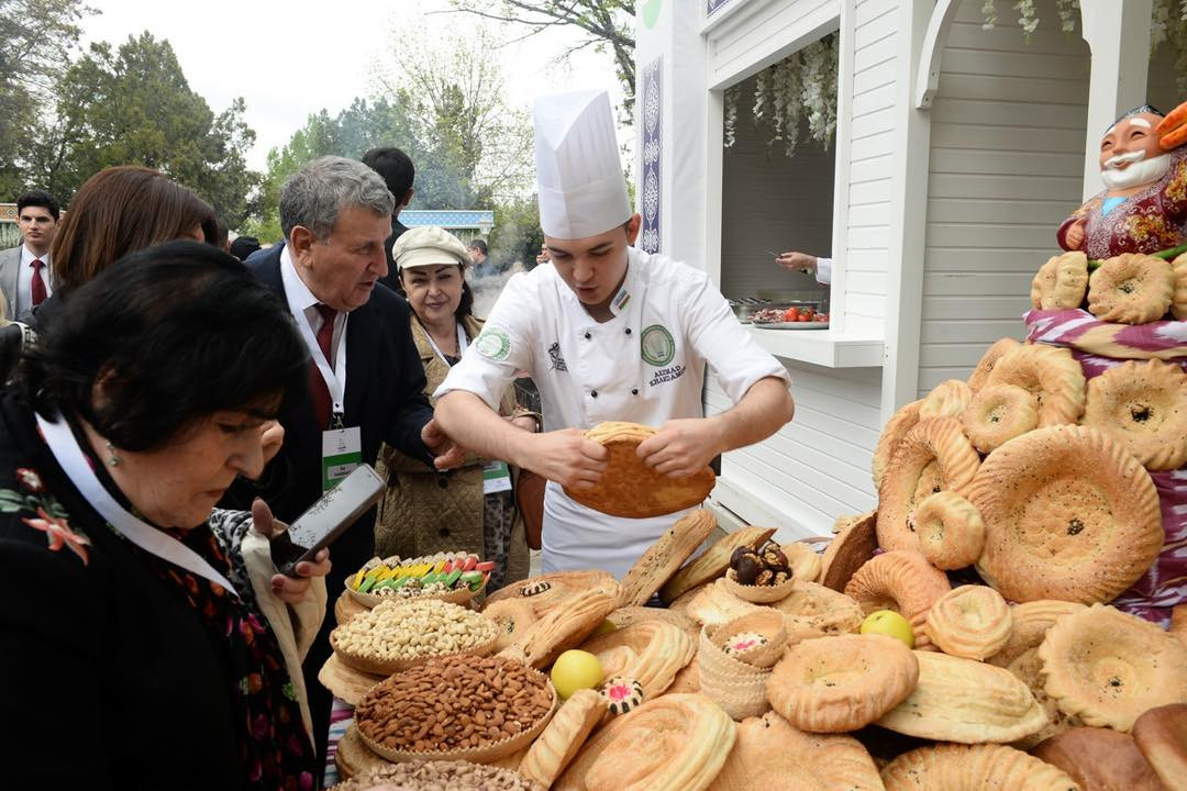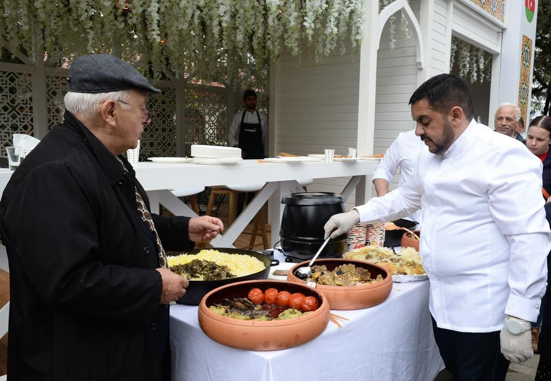 “Qarabağ” otelinin qarşısında təşkil olunan tədbirdə altı Türk dövlətinin mətbəx və sənətkarlıq nümunələri sərgilənir.