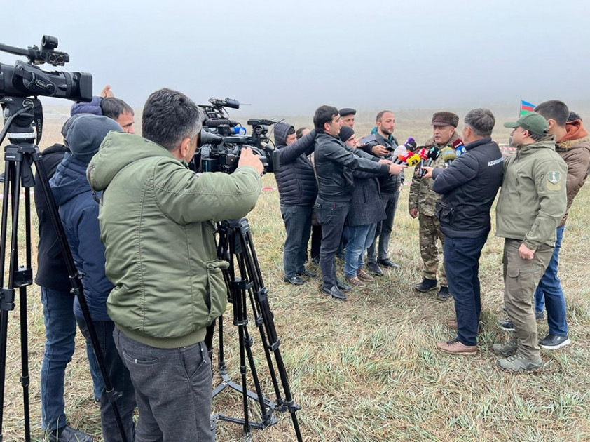 Media nümayəndələri mina və partlamamış döyüş sursatlarının məhv edilmə prosesini izləyiblər.