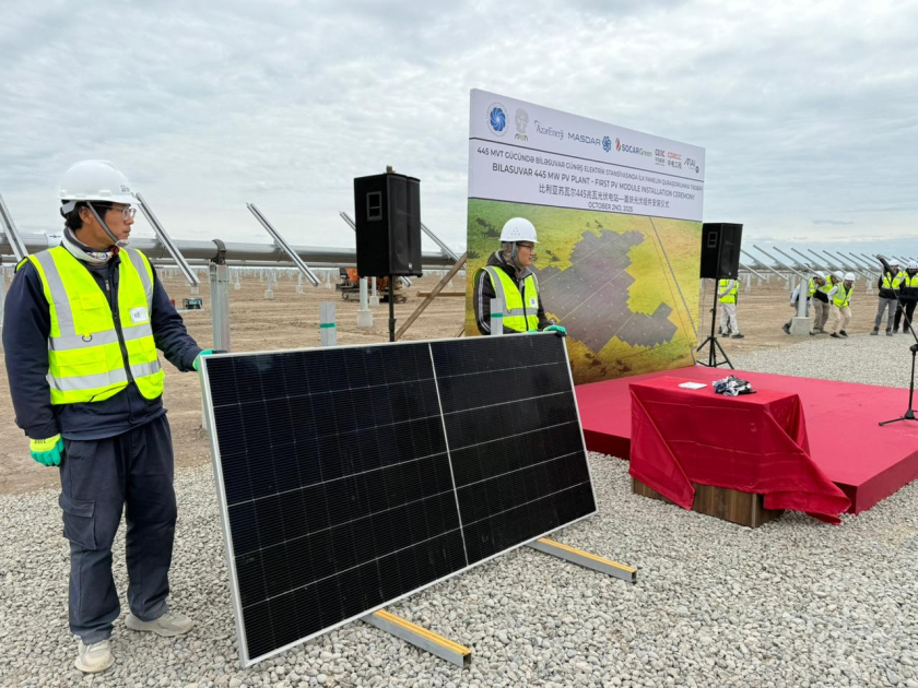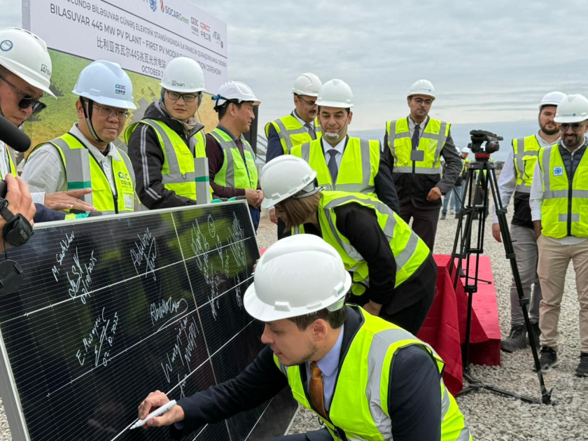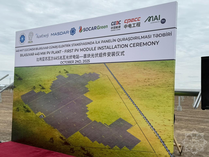 445 MVt gücündə Biləsuvar Günəş Elektrik Stansiyasında (GES) ilk günəş panelinin quraşdırılması mərasimi keçirilib.
