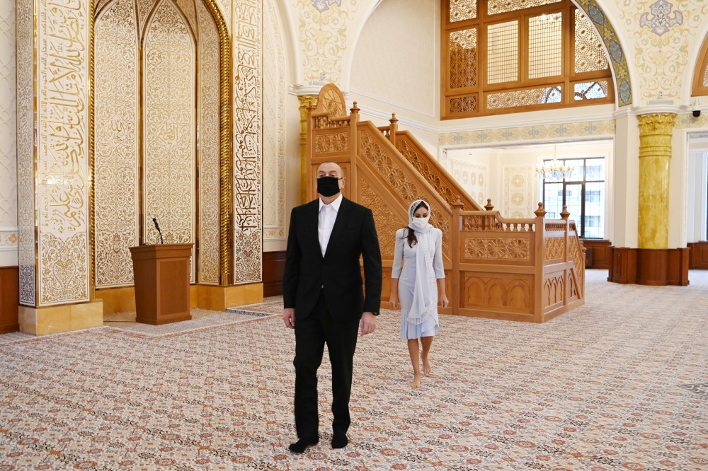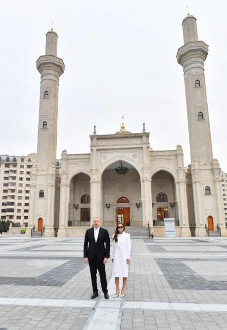 President of the Republic of Azerbaijan Ilham Aliyev and First Lady Mehriban Aliyeva have viewed the conditions created in the new building of the "Khanim Fatimeyi Zahra" mosque in Surakhani district's Yeni Gunashli settlement of Baku.