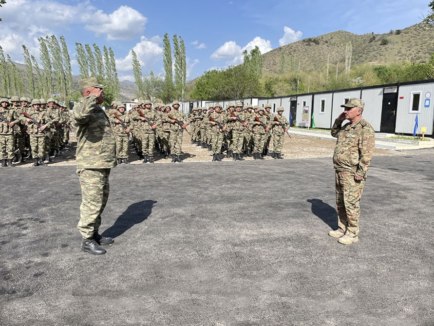 Then, Lieutenant General N. Osmanov and Lieutenant General A. Afandiyev met with the military personnel, enquired about their concern, and congratulated the servicemen on the upcoming Ramadan holiday on behalf of Colonel General Zakir Hasanov and wished them success. The servicemen thanked the Supreme Commander-in-Chief and the leadership of the Ministry of Defense for the provided excellent conditions, attention, and care.
