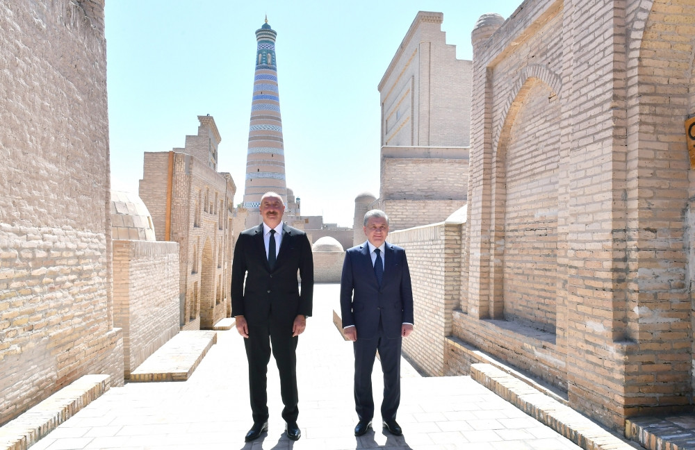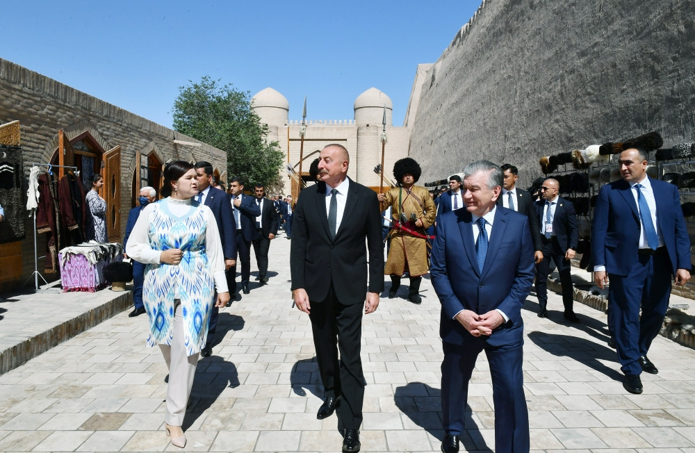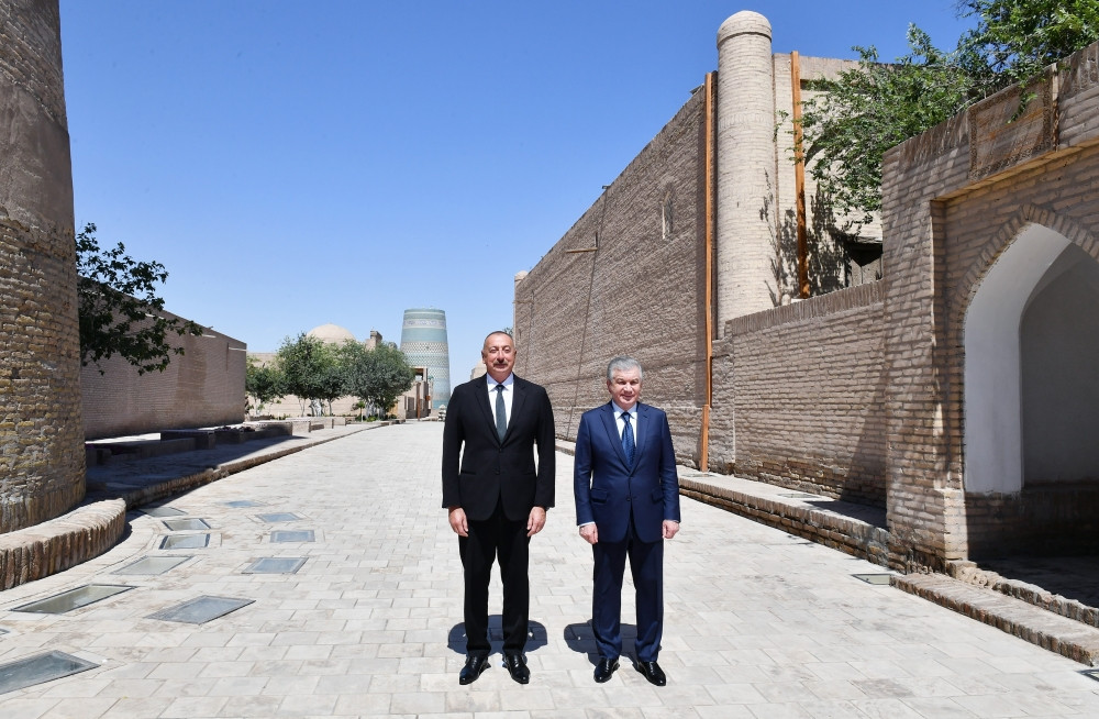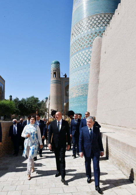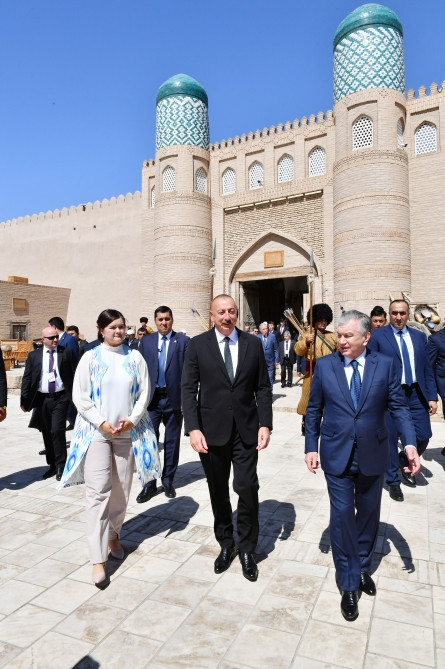 President of the Republic of Azerbaijan Ilham Aliyev, who is on state visit to Uzbekistan, and President of the Republic of Uzbekistan Shavkat Mirziyoyev have familiarized themselves with Ichan-Kala Historical Architectural State Museum in the city of Khiva.