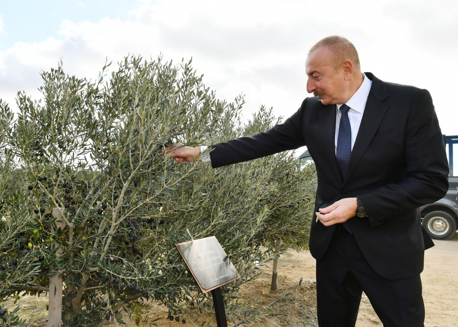 On November 4, the President of the Republic of Azerbaijan Ilham Aliyev participated in the opening of the largest olive oil and table olive products processing plant of Absheron Olive Garden Limited Liability Company (LLC) in the Zira settlement of the Khazar district of Baku, citing the Press Service of the President.