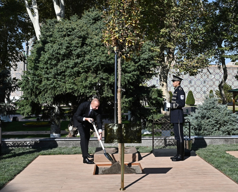 The heads of state and government attending the 9th Summit of the Organization of Turkic States have planted trees in Registan Square in Samarkand.