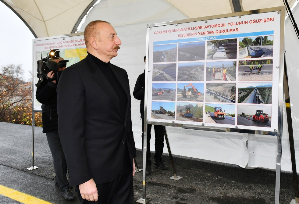 President of the Republic of Azerbaijan Ilham Aliyev has attended the Oghuz-Shaki section of Garamaryam-Ismayilli-Shaki highway after reconstruction.
