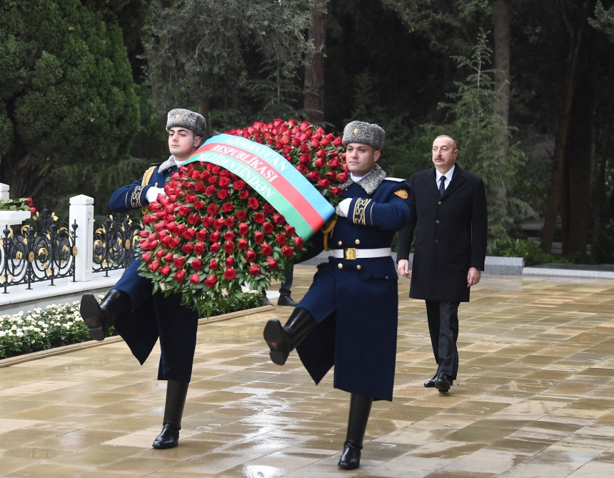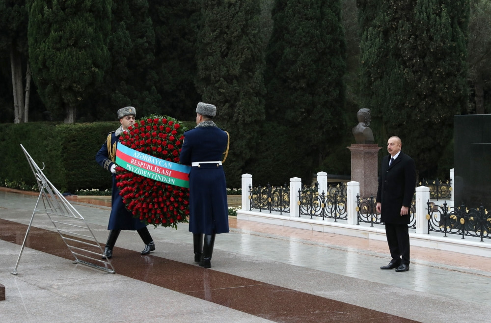 President Ilham Aliyev laid a wreath at the great leader`s grave.