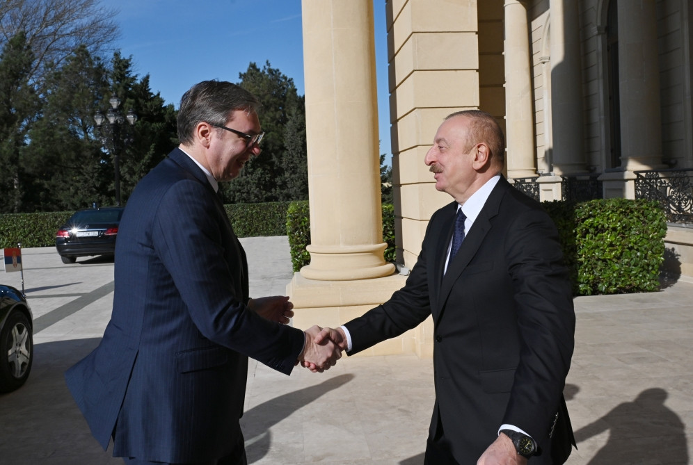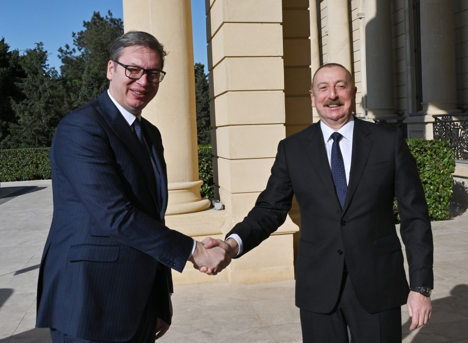 President of Azerbaijan Ilham Aliyev welcomed President of Serbia Aleksandar Vucic.