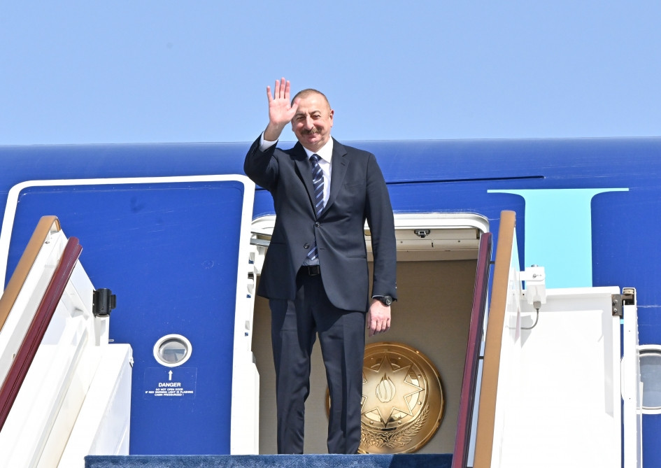 President Ilham Aliyev was seen off by officials.