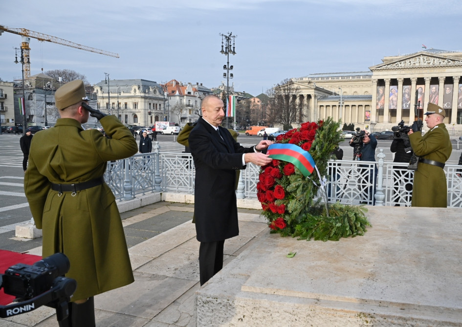 President of the Republic of Azerbaijan Ilham Aliyev has visited the tomb of the unknown soldier at Heroes' Square in Budapest.