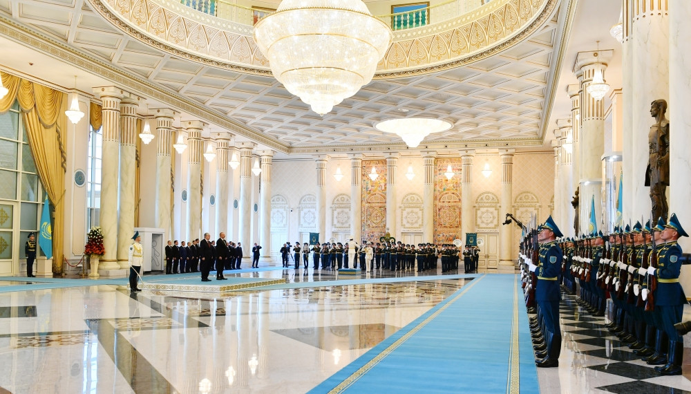 A guard of honor was arranged for President Ilham Aliyev at the Akorda Presidential Palace.