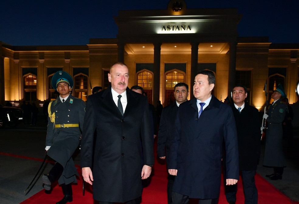 President Ilham Aliyev was seen off by Prime Minister of Kazakhstan Alikhan Smailov and other officials.