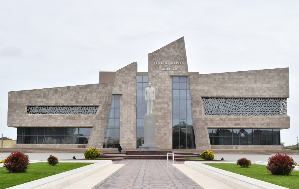 The head of state and the First Lady visited a statue of Great Leader Heydar Aliyev in the city of Neftchala.