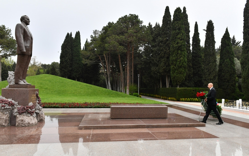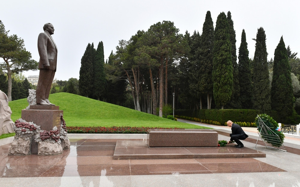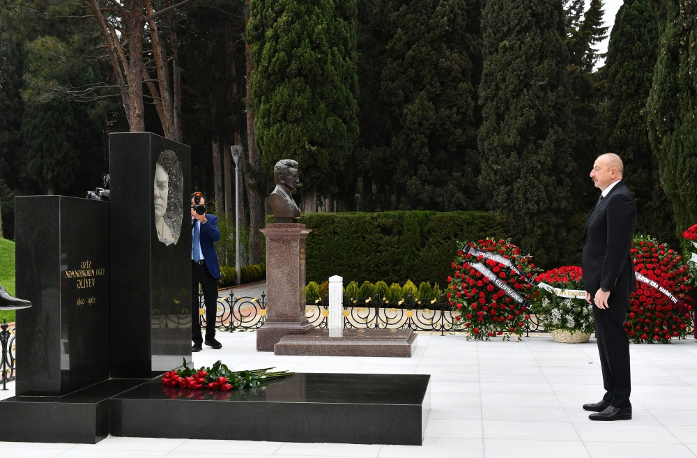 President Ilham Aliyev visited the tomb of national leader Heydar Aliyev and put flowers at it.