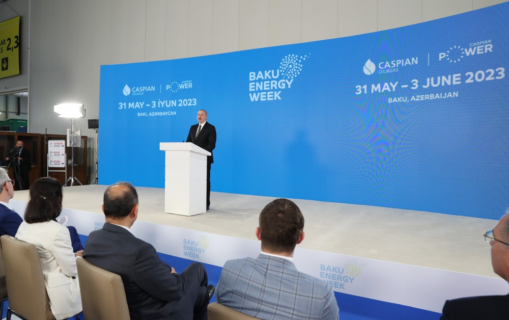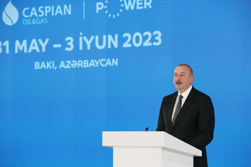 President of the Republic of Azerbaijan Ilham Aliyev is attending the opening of the 28th International Caspian Oil&Gas Exhibition (Caspian Oil & Gas) and the 11th Caspian International Power and Green Energy Exhibition (Caspian Power) within the framework of the Baku Energy Week at the Baku Expo Center.