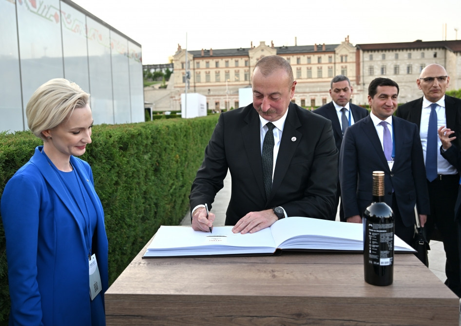 President of the Republic of Azerbaijan Ilham Aliyev signed a guest book of the Mimi Castle.