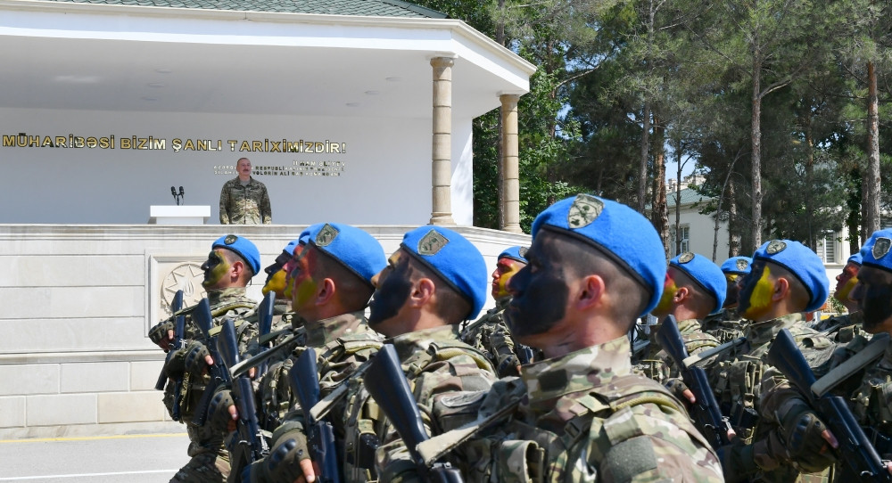 President of the Republic of Azerbaijan, Commander-in-Chief of the Armed Forces Ilham Aliyev has viewed the conditions created at one of the commando military units of the Ministry of Defense, and presented the battle flag to the military unit.