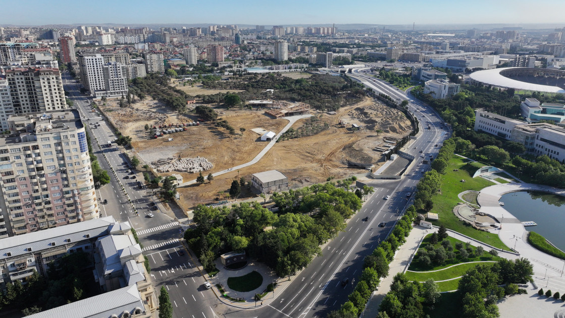 President of the Republic of Azerbaijan Ilham Aliyev has reviewed the ongoing construction at the new park near the “Ganjlik” metro station in Baku.