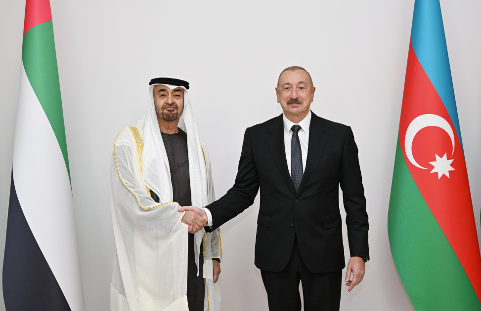 Members of the Azerbaijani delegation were presented to the UAE President, and members of the UAE delegation were presented to the Azerbaijani President.