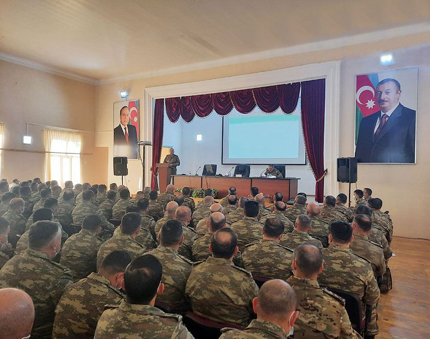 Əvvəlcə ulu öndər Heydər Əliyevin hərbi hissənin ərazisində ucaldılan büstü önünə gül dəstələri qoyulub, xatirəsi hörmət və ehtiramla anılıb. Qeyd olunub ki, keçirilən toplanışın əsas məqsədi zabitlərin müasir ümumqoşun döyüşünün aparılması, eləcə də bölmələri idarəetmə üzrə nəzəri biliklərin və peşəkarlığının, döyüş işinin təşkili zamanı qərar qəbuletmə və təşkilatçılıq bacarıqlarının təkmilləşdirilməsidir. Baş Qərargah rəisi Azərbaycan Respublikasının Prezidenti, Silahlı Qüvvələrin Ali Baş Komandanı cənab İlham Əliyevin rəhbərliyi altında orduda aparılan davamlı islahatların həyata keçirilməsi ilə bağlı qarşıda duran vəzifələrin icrası, eləcə də müdafiə nazirinin döyüş növbətçiliyinin və qoşunların döyüş qabiliyyətinin daha da artırılması ilə əlaqədar göstərişlərini komandir-rəis heyətinin diqqətinə çatdırıb.