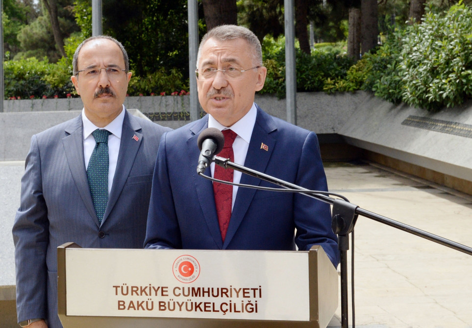 "Türk şəhidliyi” abidəsinin Türkiyə və Azərbaycan qardaşlığının ən böyük nişanəsi olduğunu vurğulayan Fuat Oktay bildirib ki, bu müqəddəs məkanda uyuyan türk şəhidləri Qafqaz İslam Ordusunun mərd əsgərləri kimi azərbaycanlı qardaşları ilə birlikdə düşmənlərə qarşı vuruşub və hamının qəlbində ölümsüzlüyə yol açıblar. Vurğulanıb ki, uğrunda şəhidliyə ucaldıqları torpaq naminə birgə mübarizə Türkiyə və Azərbaycanın bir millət, iki dövlət olduğumuzu nümayiş etdirib. “Azərbaycanlılar da Çanaqqala müharibəsində bizim yanımızda olublar və qəhrəmancasına döyüşüblər. Bir əsr bundan əvvəl göstərilən qəhrəmanlıq və fədakarlıq Azərbaycanın 44 günlük haqq savaşında da təkrarlanıb. Bu amillər bizi əbədi olaraq bir-birimizə bağlayıb”, - deyə o qeyd edib.
