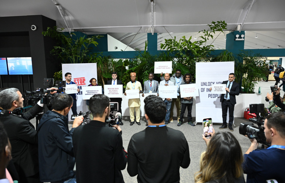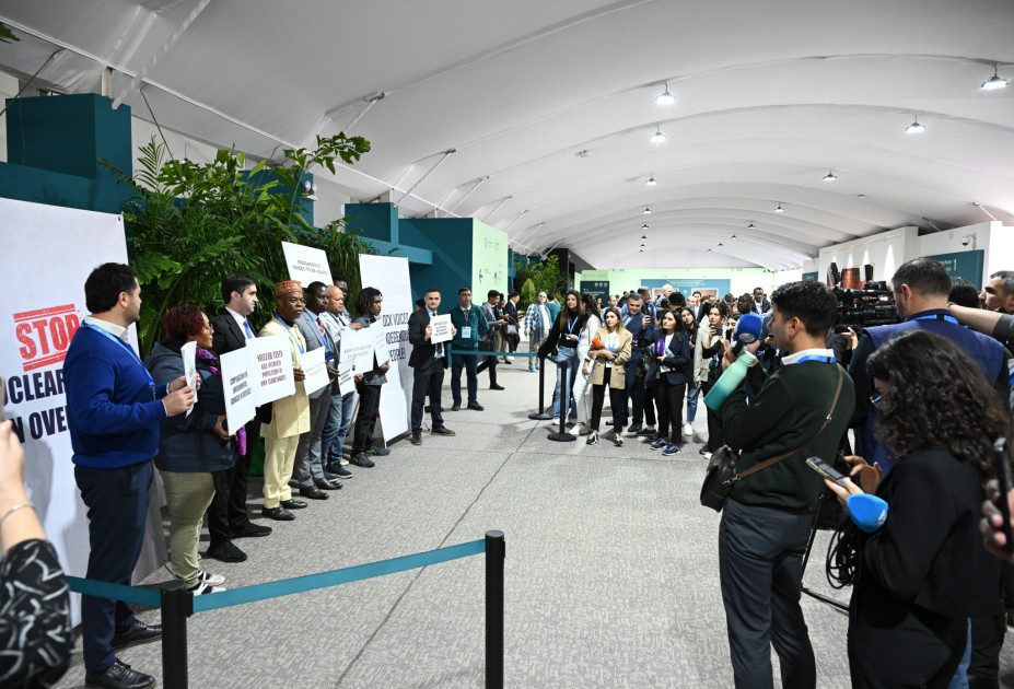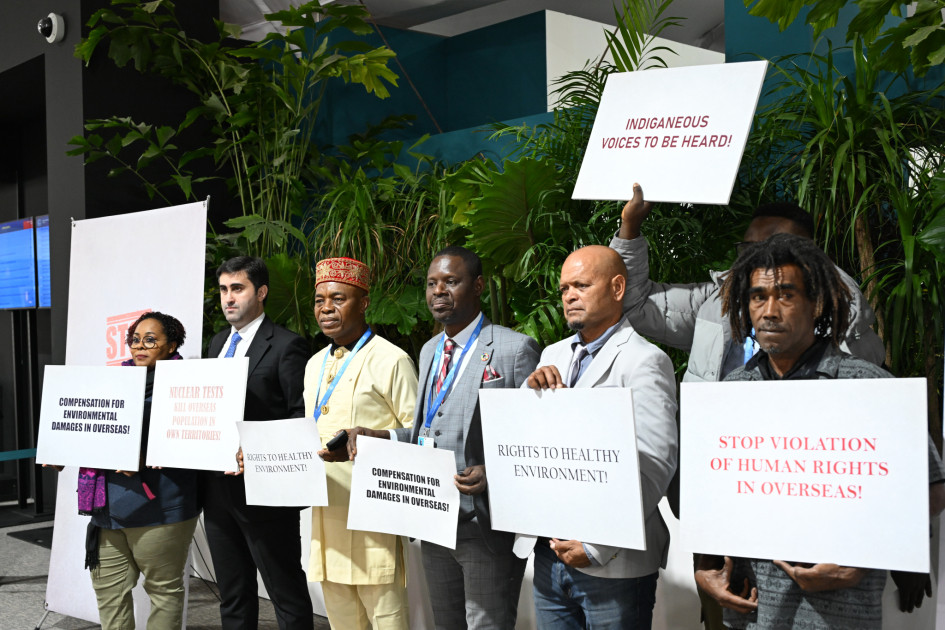 COP29 çərçivəsində müstəmləkə ərazilərinin nümayəndələri tərəfindən yerli xalqların hüquqlarının kütləvi pozulması əleyhinə Mavi Zonada etiraz aksiyası keçirilib.