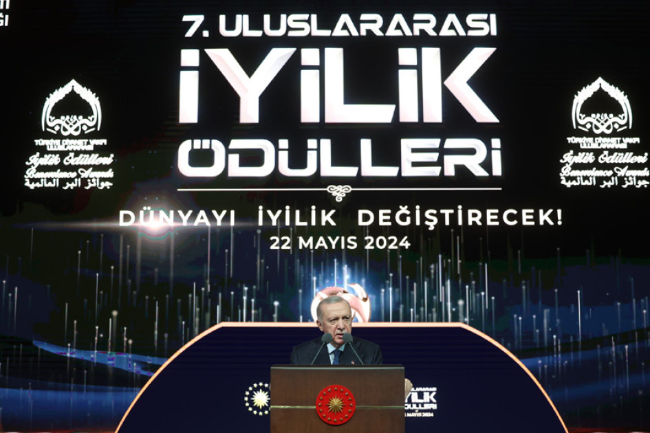 Выступая на церемонии награждения в Президентском комплексе в Анкаре, турецкий лидер заявил, что мир держится на добрых людях, верных своей стране и обществу, стремящихся к помощи всем, кто в этом нуждается.
