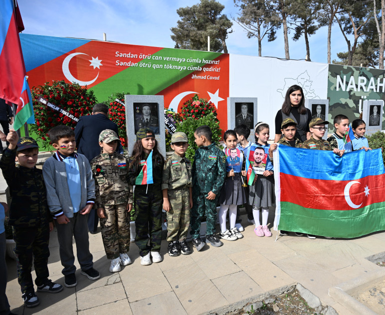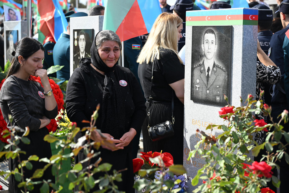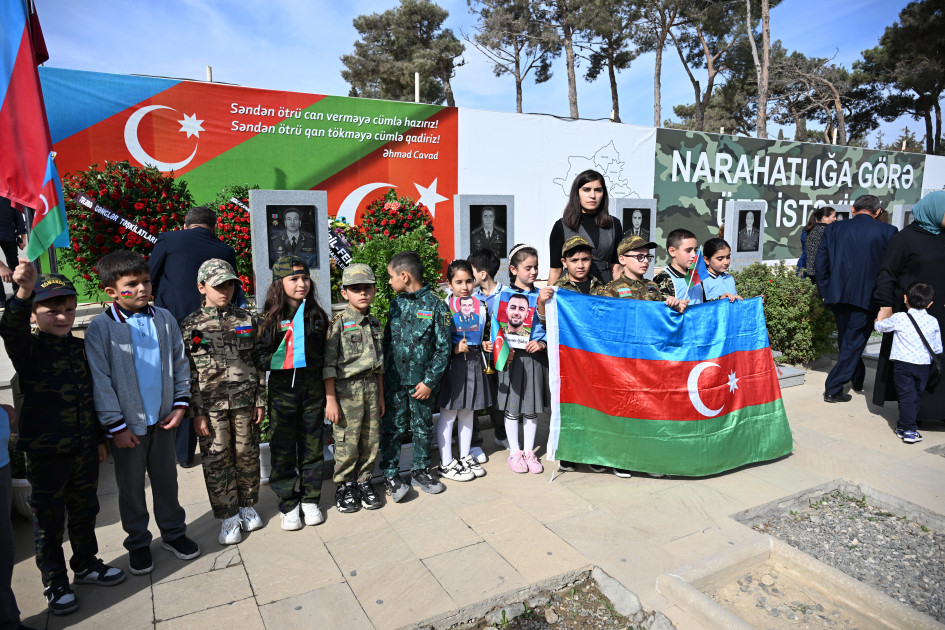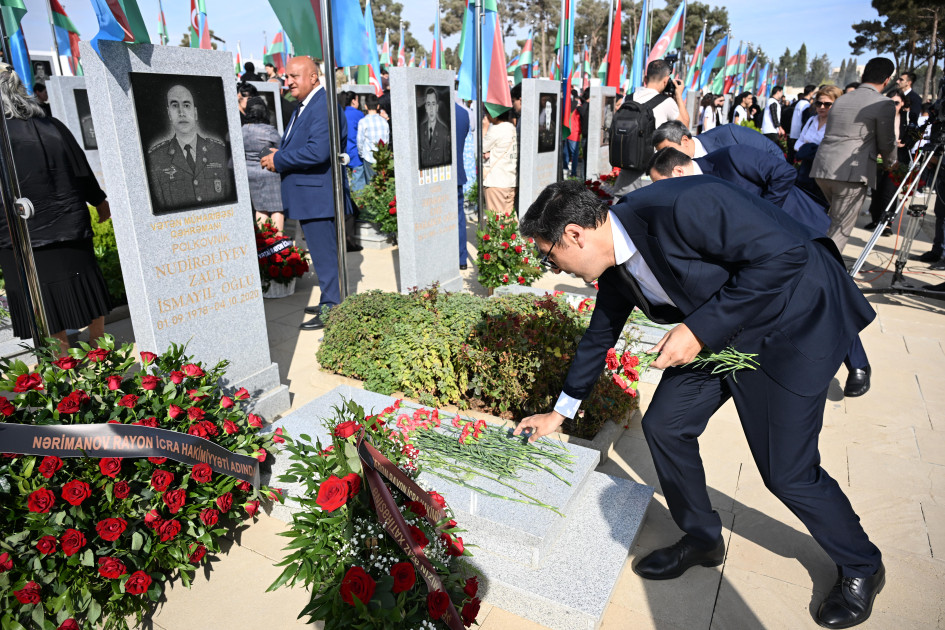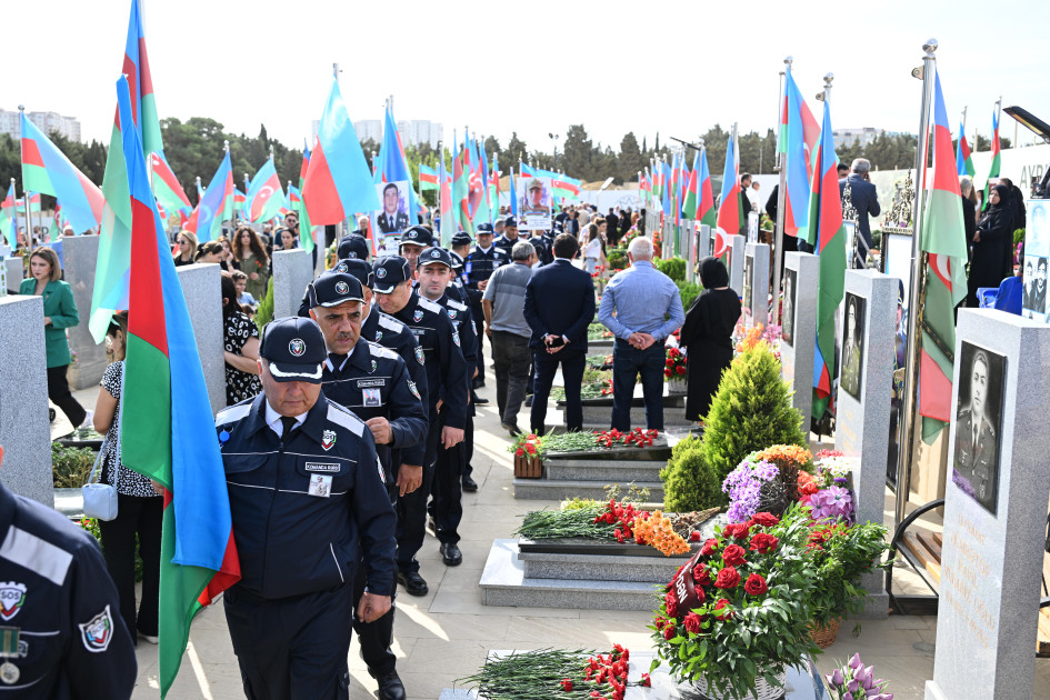 С самого утра представители государства и правительства, участники Отечественной войны, ветераны, военнослужащие, семьи шехидов, представители общественности приходят, чтобы почтить память героических сынов Родины, возносятся молитвы за упокоение душ наших шехидов.
