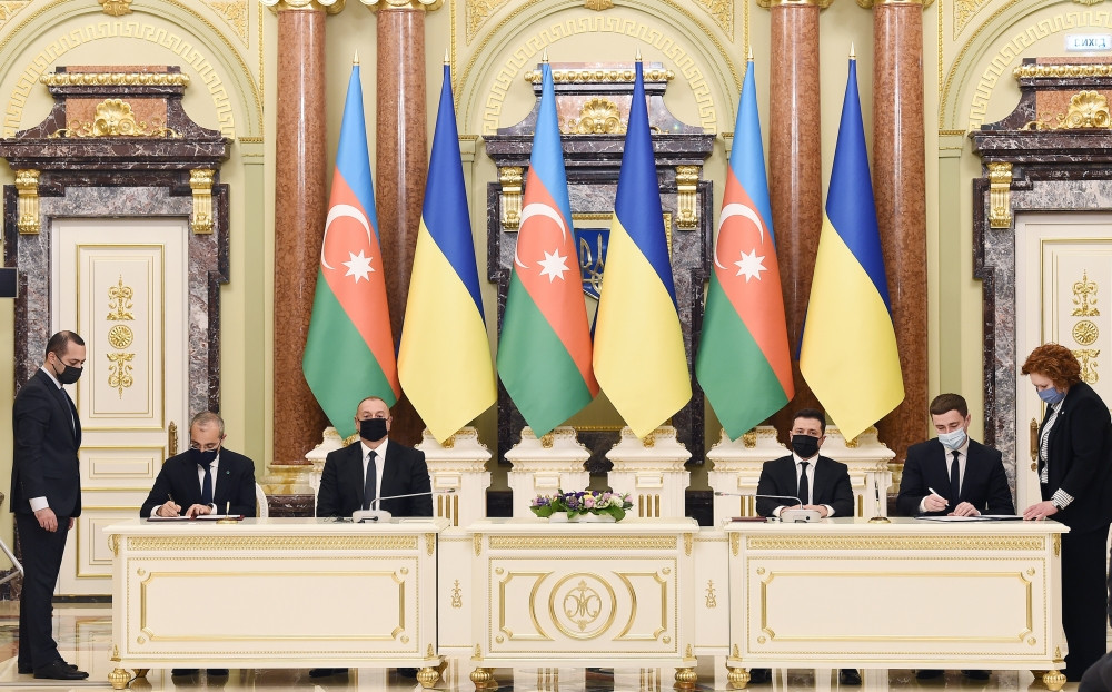 Yanvarın 14-də Kiyevdə geniş tərkibdə görüş başa çatdıqdan sonra Azərbaycan Respublikasının Prezidenti İlham Əliyevin və Ukrayna Prezidenti Volodimir Zelenskinin iştirakı ilə Azərbaycan-Ukrayna sənədlərinin imzalanması mərasimi olub.
