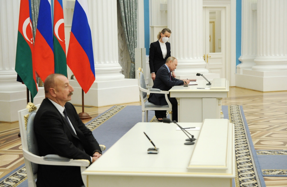 Sənədi Azərbaycan Respublikasının Prezidenti İlham Əliyev və Rusiya Federasiyasının Prezidenti Vladimir Putin imzalayıblar.
