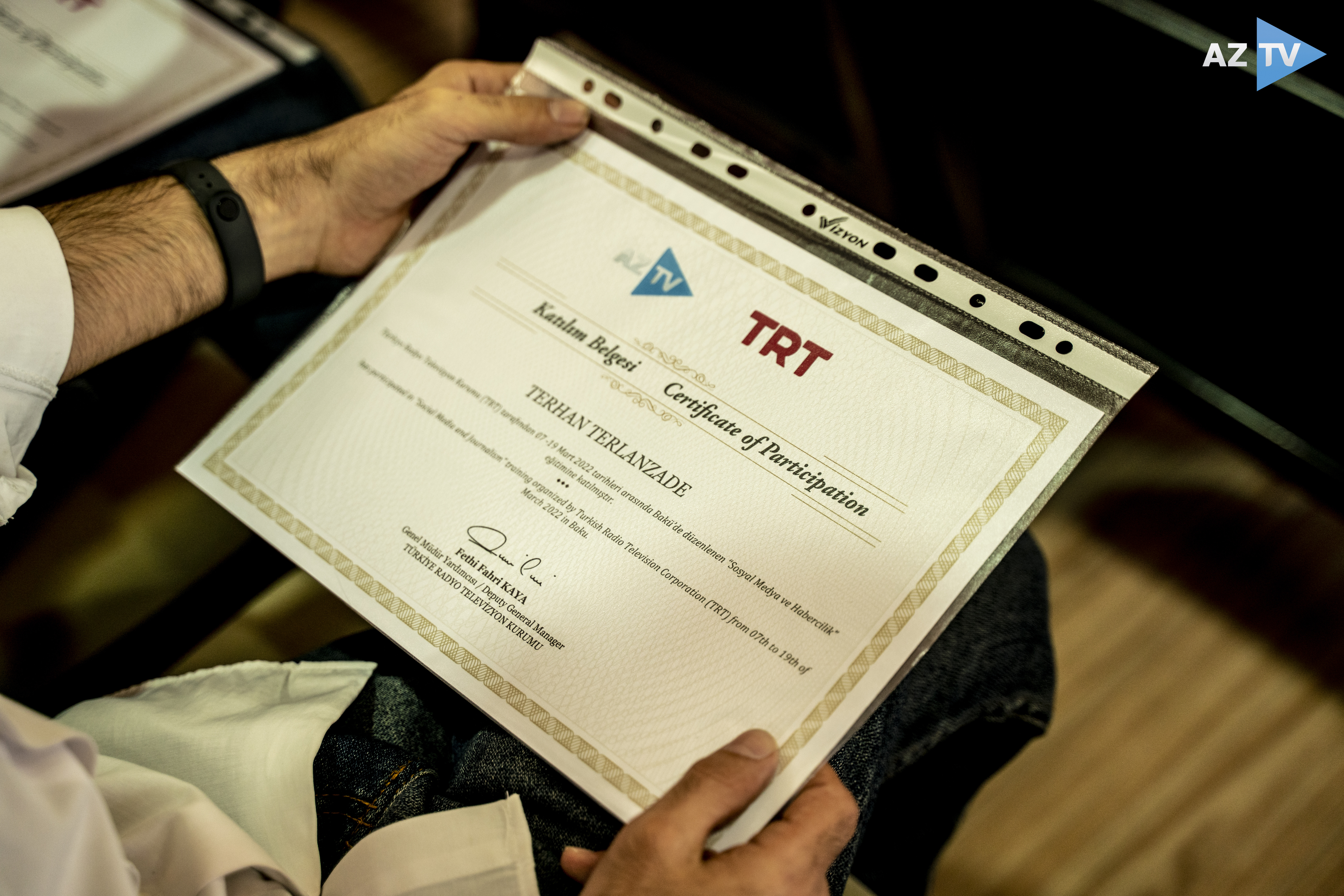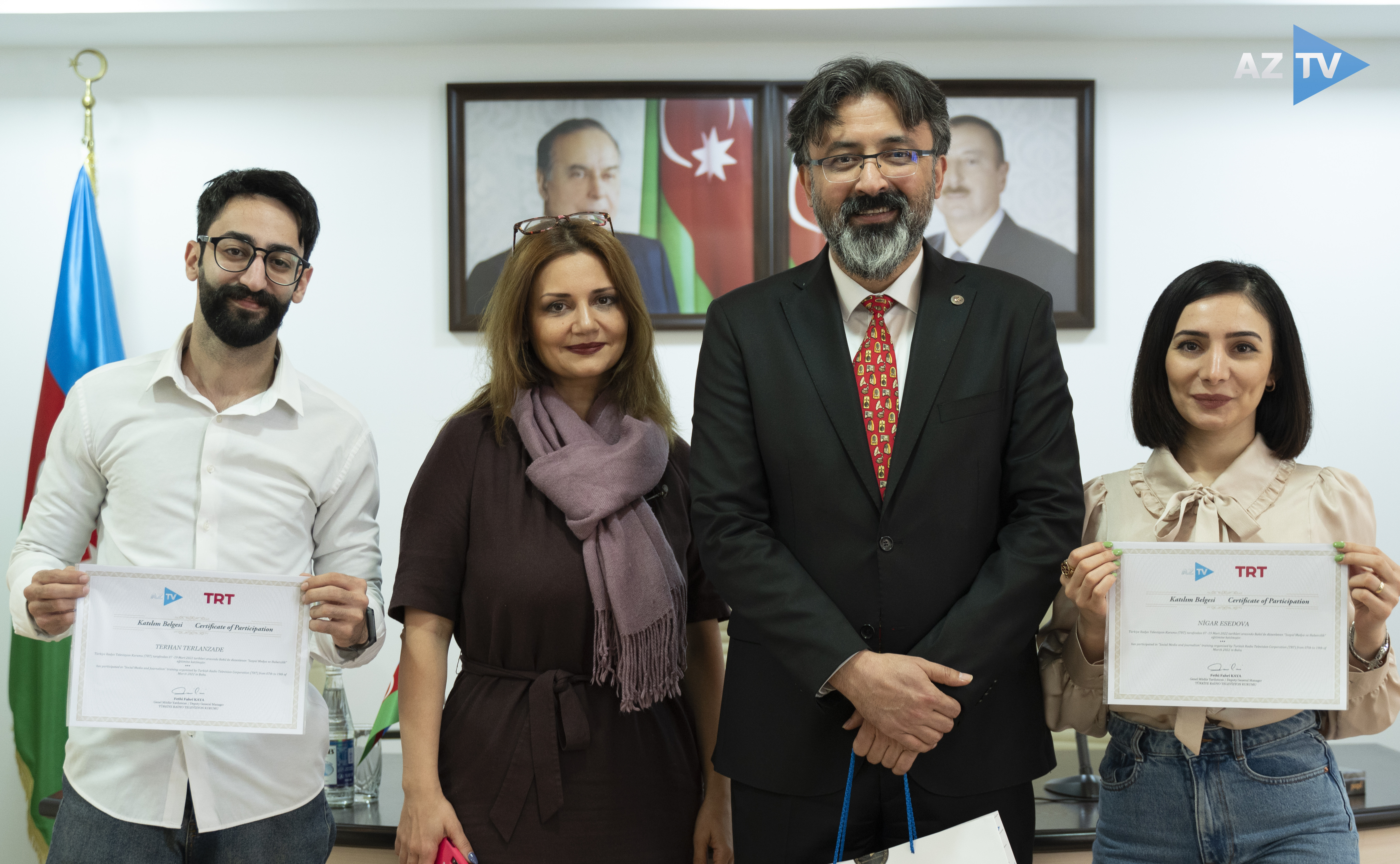 QSC-nin Sosial media və ictimaiyyətlə əlaqələr şöbəsinin məlumatına görə, 2 həftəlik təlimlərdə iştirak edən AzTV əməkdaşları sertifikatlarla təltif olunublar.