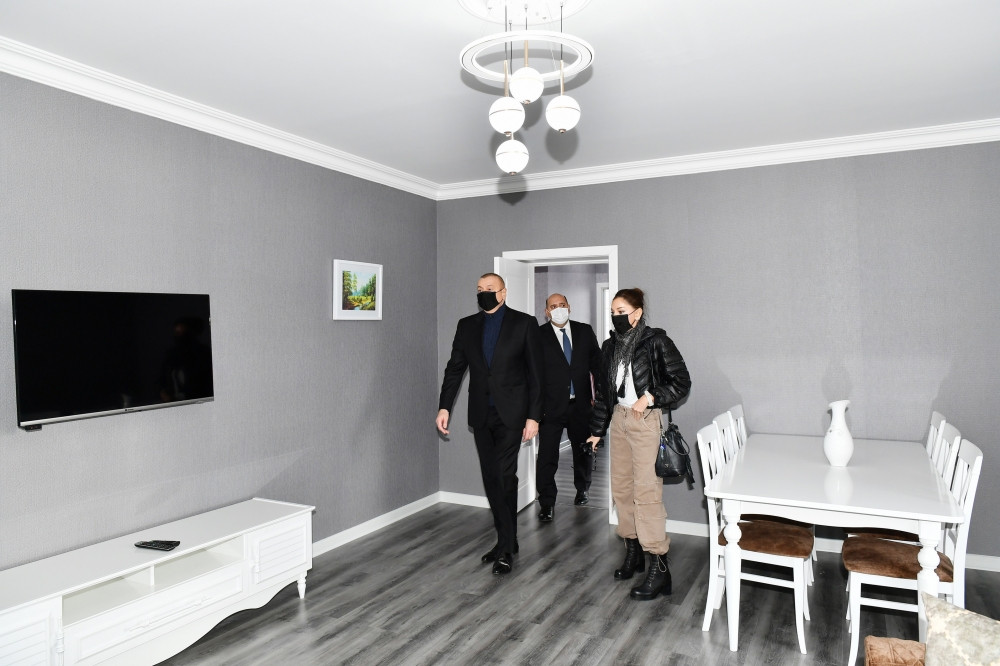 Prezident və birinci xanım Tərtər rayonunun Suqovuşan qəsəbəsində fərdi evdə aparılmış təmir-bərpa işləri ilə tanış olublar. Qarabağ iqtisadi rayonuna daxil olan işğaldan azad edilmiş ərazilərdə (Şuşa rayonu istisna olmaqla) Azərbaycan Respublikası Prezidentinin xüsusi nümayəndəsi Emin Hüseynov dövlətimizin başçısına və birinci xanıma görülən işlərlə bağlı məlumat verib. Bildirilib ki, 44 günlük Vətən müharibəsi zamanı, hərbi əməliyyatlar nəticəsində Tərtər rayonunun işğaldan azad edilmiş Suqovuşan qəsəbəsində 16 fərdi ev qismən yararsız vəziyyətə düşmüşdür. Bu evlərdən biri əsaslı təmir olunub. Təmir olunan evin ümumi yaşayış sahəsi 92 kvadratmetrdir. Layihəyə əsasən ev 3 otaq, mətbəx və 2 sanitar qovşağından ibarətdir. Tikinti altında olan sahə isə 148 kvadratmetr təşkil edir. Fasadın əsas hissəsi dekorativ təbii daşla üzlənib ki, bu da evin və yerləşdiyi ərazinin ahəngini tamamlayır. Fasadın qalan hissəsində isə suyadavamlı boya materialından istifadə olunub. Evin damı metal kirəmitlə örtülüb, terrasa keramika döşənib, tavanı isə taxta materialdan hazırlanıb. Evin otaqları yüksək səviyyədə və müasir dizaynla bərpa olunub. Həyətyanı sahə abadlaşdırılıb, ərazidə ağaclar əkilib. Fərdi evlərin yerləşdiyi məhəlləyə işıq və su xətləri çəkilib, yola asfalt örtüyü döşənib.