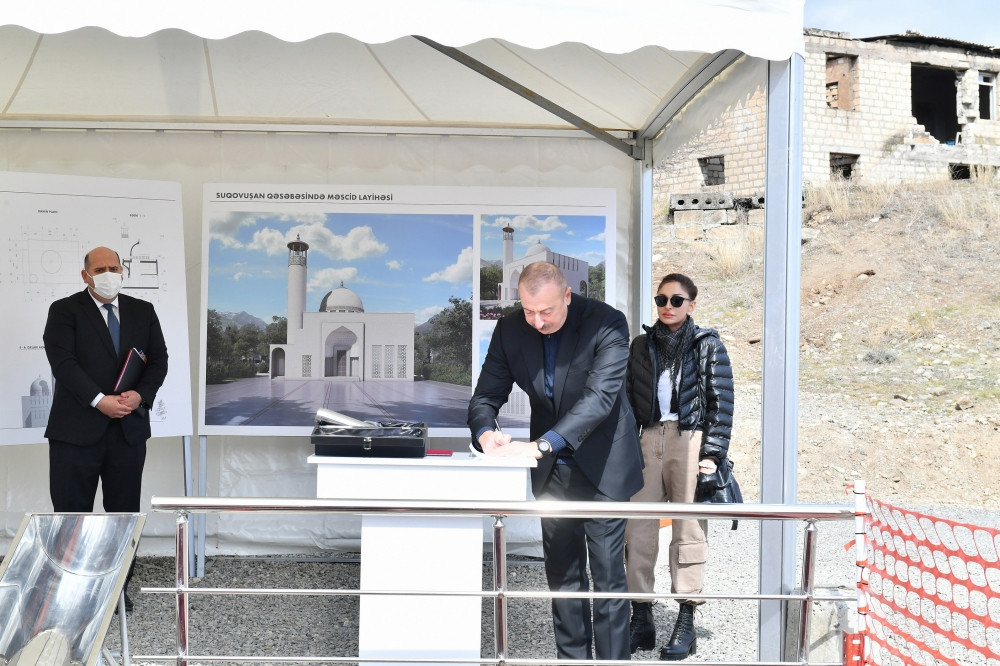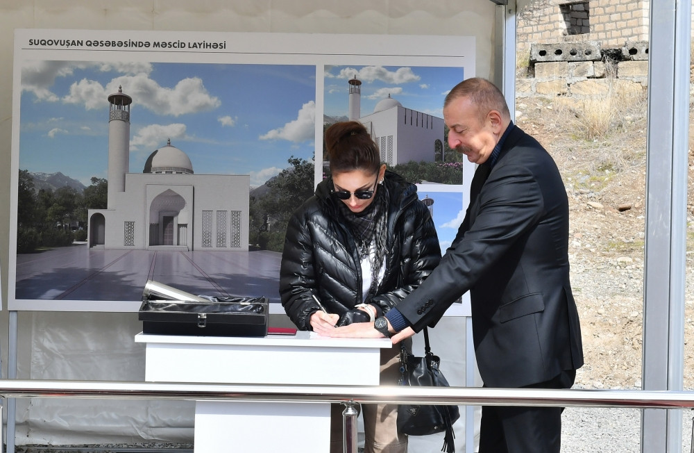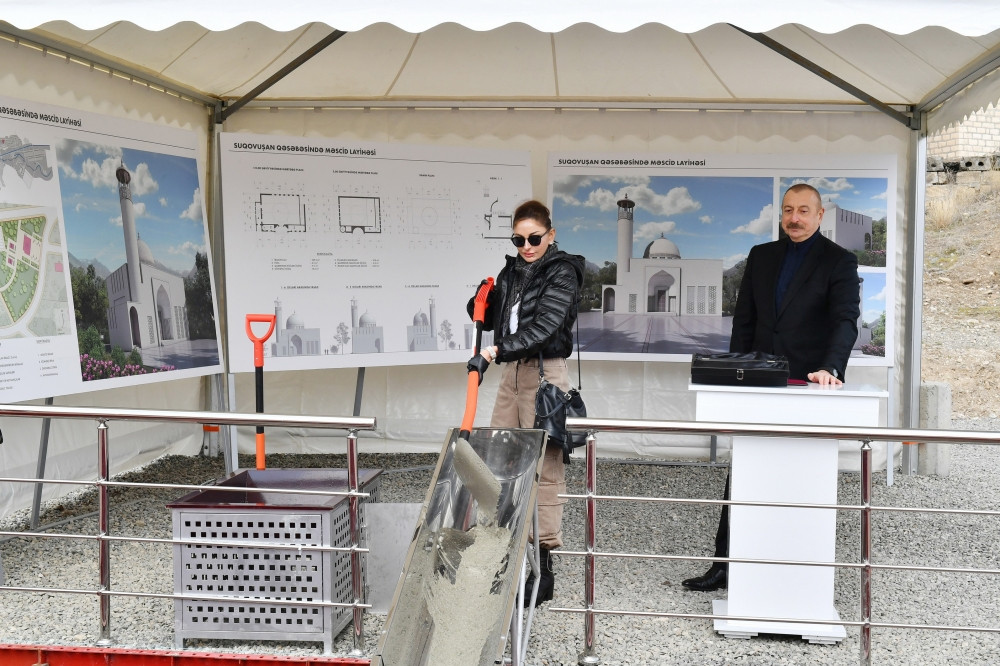 Azərbaycan Respublikasının Prezidenti İlham Əliyev və birinci xanım Mehriban Əliyeva Tərtər rayonunun Suqovuşan qəsəbəsində yeni tikiləcək məscidin təməlini qoyublar.