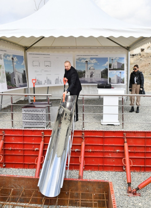 Qarabağ iqtisadi rayonuna daxil olan işğaldan azad edilmiş ərazilərdə (Şuşa rayonu istisna olmaqla) Azərbaycan Respublikası Prezidentinin xüsusi nümayəndəsi Emin Hüseynov dövlətimizin başçısına və birinci xanıma qəsəbədə inşa olunacaq məscidin layihəsi barədə məlumat verib. Bildirilib ki, ümumi ərazisi 0,6 hektar olan kompleksə məscid binası, köməkçi bina, dəstəmaz otağı və avtodayanacaq daxildir. İki mərtəbədən ibarət olacaq məscid binasının uzunluğu 16,8 metr, eni isə 11,2 metr təşkil edəcək. Burada kişilər və qadınlar üçün ibadət zalının olması planlaşdırılır. Layihəyə əsasən məsciddə eyni vaxtda 110 nəfərin ibadət etməsi üçün şərait yaradılacaq. Dövlətimizin başçısı və birinci xanım məscidin təməlini qoyublar.