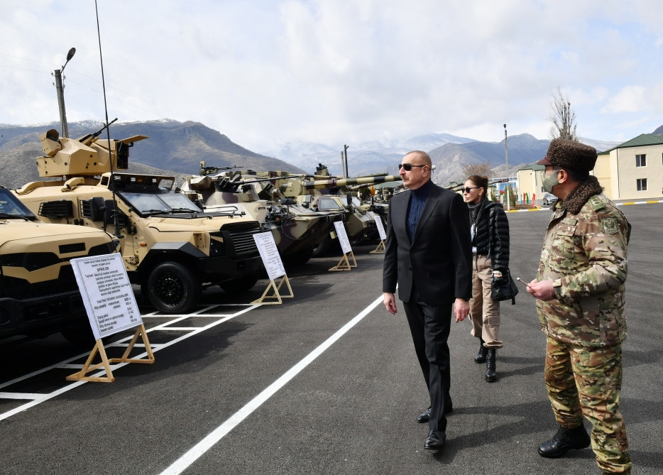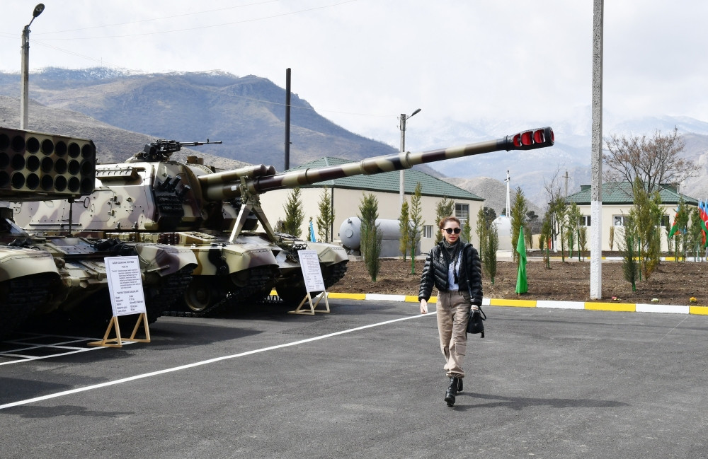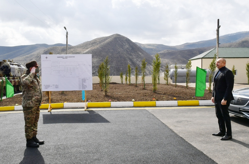 Müdafiə naziri general-polkovnik Zakir Həsənov dövlətimizin başçısına raport verib. Prezident İlham Əliyev və birinci xanım Mehriban Əliyeva əvvəlcə sıra meydanında düzülmüş döyüş texnikalarına baxıblar. Silahlı Qüvvələrin Ali Baş Komandanına hərbi hissədə yaradılan şərait bərədə məlumat verilib. Bildirilib ki, hərbi hissənin ərazisində nəzarət-buraxılış məntəqəsi, qərargah binaları, əsgər yataqxanaları, tibb məntəqəsi, qazanxanalar, mağaza, 174 nəfərlik yeməkxana binası yaradılıb. Hərbi hissənin qərargah binasında hərbçilər üçün bütün zəruri avadanlıqla təchiz edilən iş otaqları var. Əsgər yeməkxanası da müasir səviyyədədir.