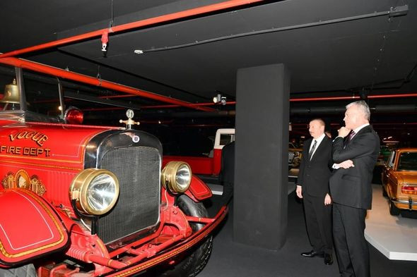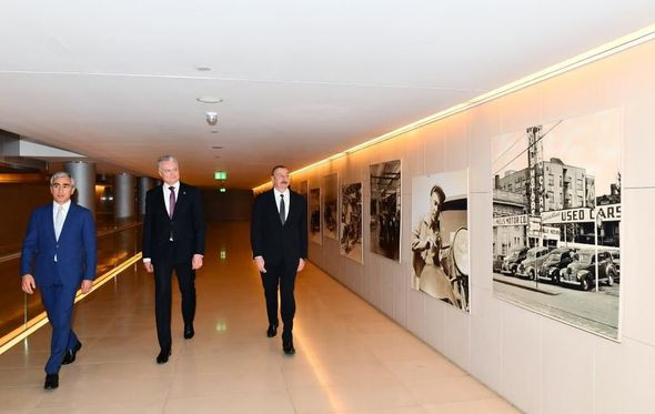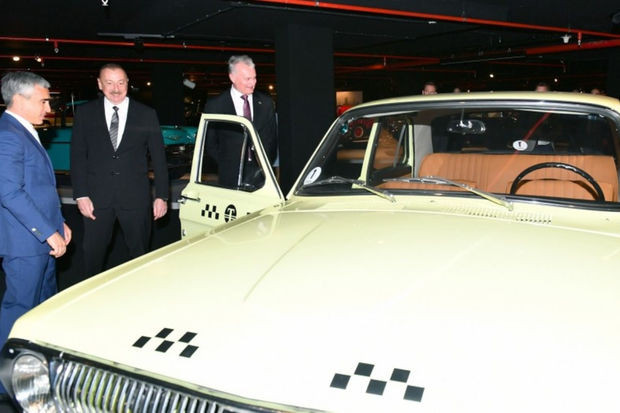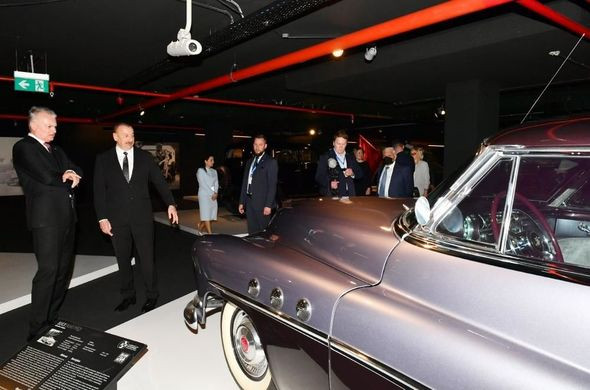 Azərbaycan-Litva sənədlərinin imzalanması mərasimindən sonra dövlət başçıları Heydər Əliyev Mərkəzində klassik avtomobillərin sərgisi ilə tanış olublar.