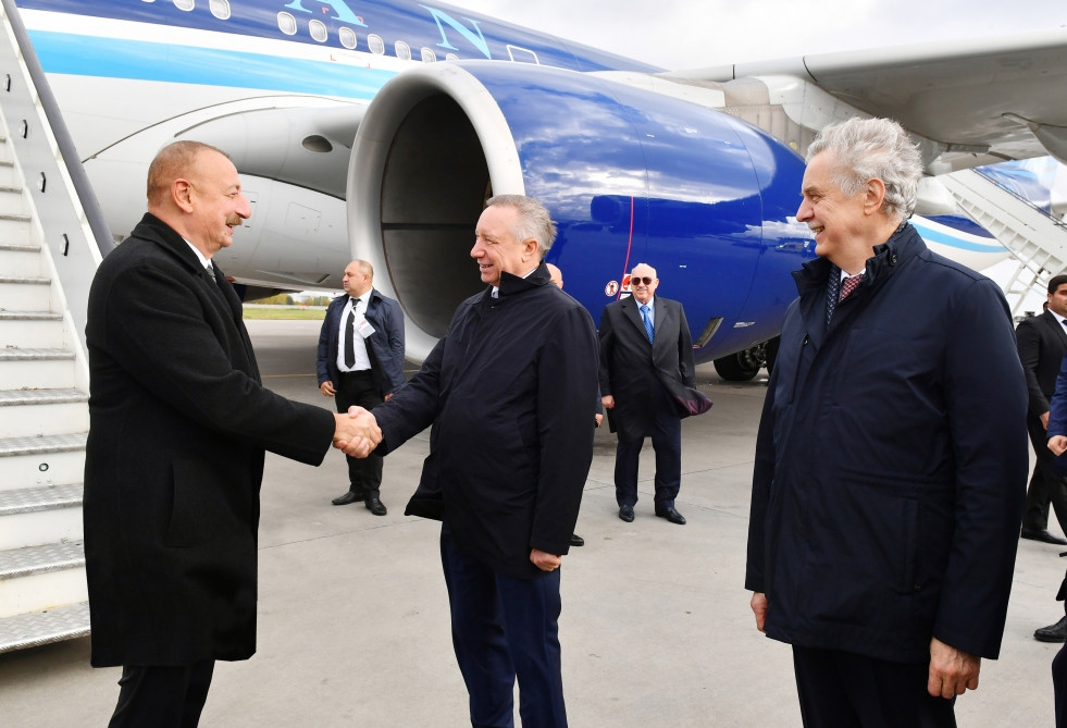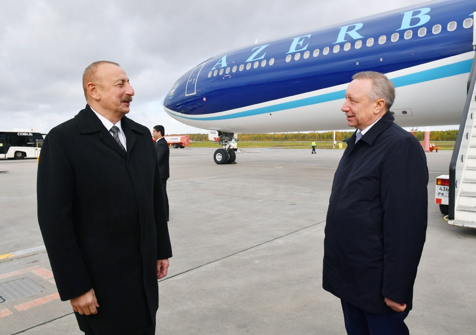 Sankt-Peterburq şəhərinin Pulkovo-1 hava limanında dövlətimizin başçısı İlham Əliyevi Sankt-Peterburqun qubernatoru Aleksandr Beqlov və digər rəsmi şəxslər qarşıladılar.