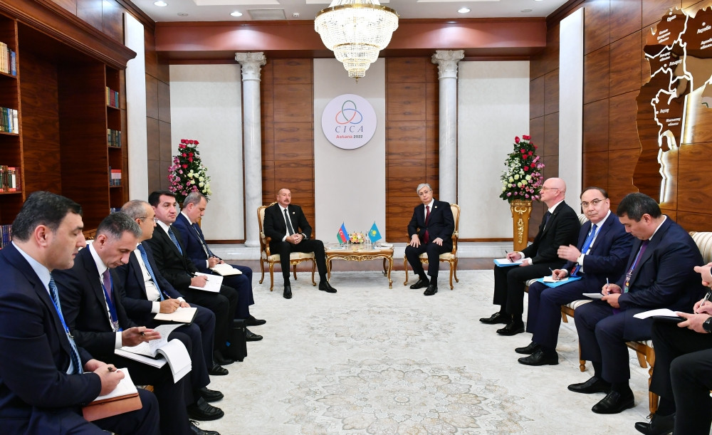Oktyabrın 13-də Astanada Azərbaycan Respublikasının Prezidenti İlham Əliyevin Qazaxıstan Respublikasının Prezidenti Kasım-Jomart Tokayev ilə görüşü olub.