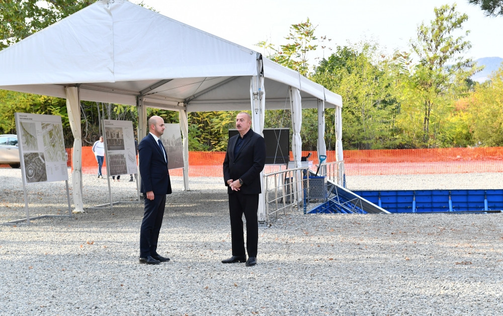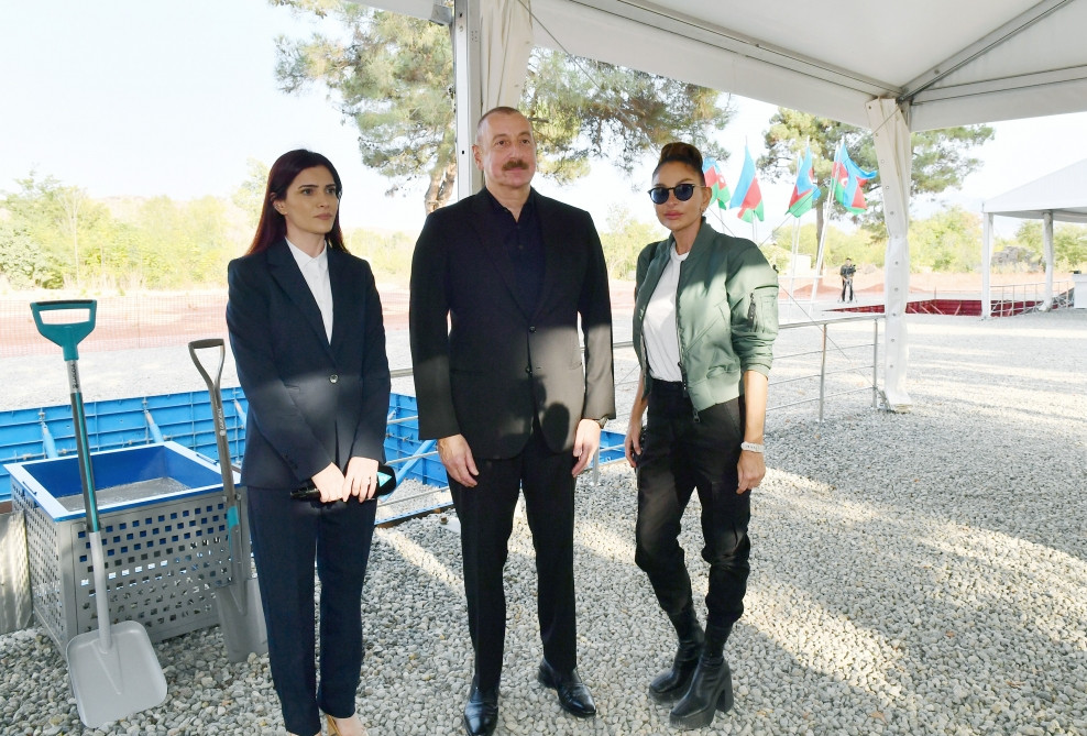 Azərbaycan Respublikasının Prezidenti İlham Əliyev və birinci xanım Mehriban Əliyeva oktyabrın 19-da Zəngilan şəhərində ilk yaşayış binasının təməlqoyma mərasimində iştirak ediblər.