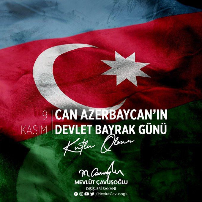Türkiyənin xarici işlər naziri Mövlud Çavuşoğlu 9 Noyabr - Azərbaycanın Dövlət Bayrağı Günü ilə bağlı paylaşım edib.