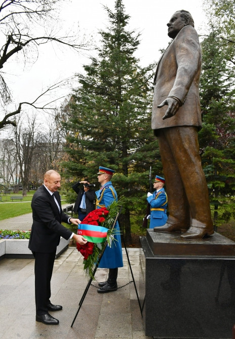 Dövlətimizin başçısı abidələrin önünə əklil qoyub.