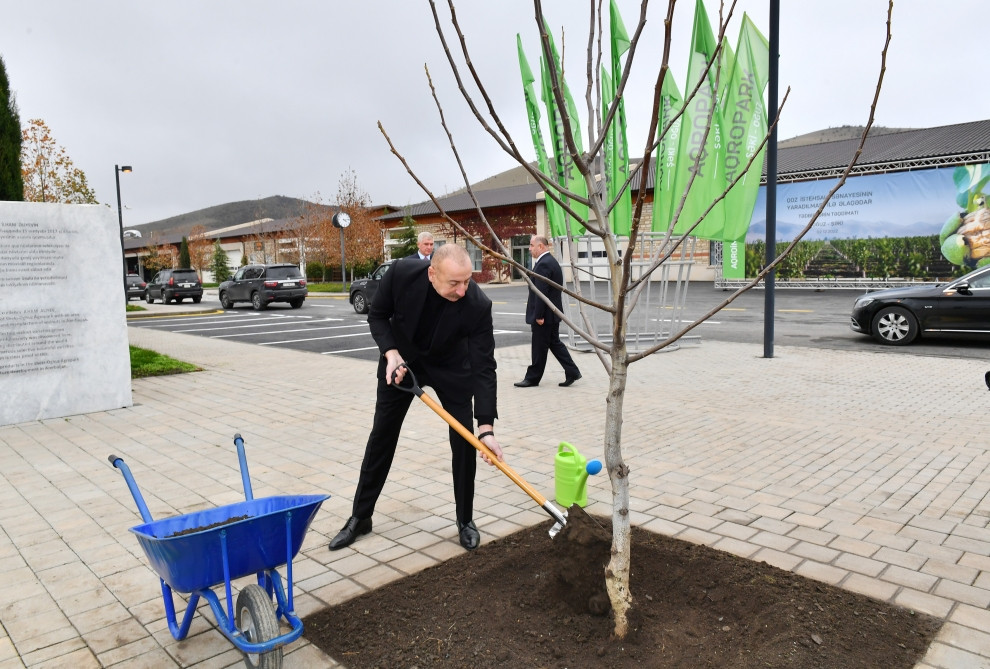 Azərbaycan Respublikasının Prezidenti İlham Əliyev dekabrın 2-də Oğuz rayonunda “Aqroinkişaf 2017” Məhdud Məsuliyyətli Cəmiyyətinin (MMC) “Şəki-Oğuz” Aqroparkında yaradılan şəraitlə tanış olub.