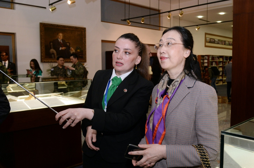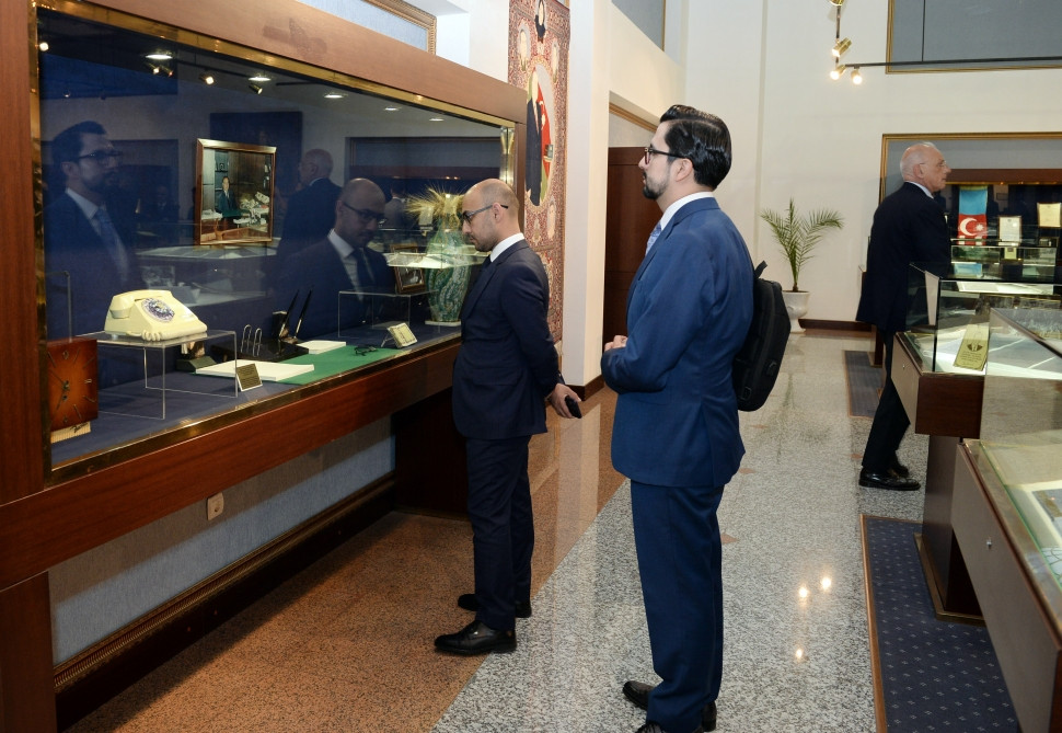 Sonra Heydər Əliyev Muzeyinə gələn qonaqlar Ümummilli Liderin həyat və fəaliyyətinə aid fotoşəkil və eksponatlarla tanış olublar. Ulu Öndərin hər kəsə örnək olan çoxşaxəli siyasi fəaliyyəti, o cümlədən həyatının Naxçıvan mərhələsi haqqında xarici qonaqlara ətraflı məlumat verilib.