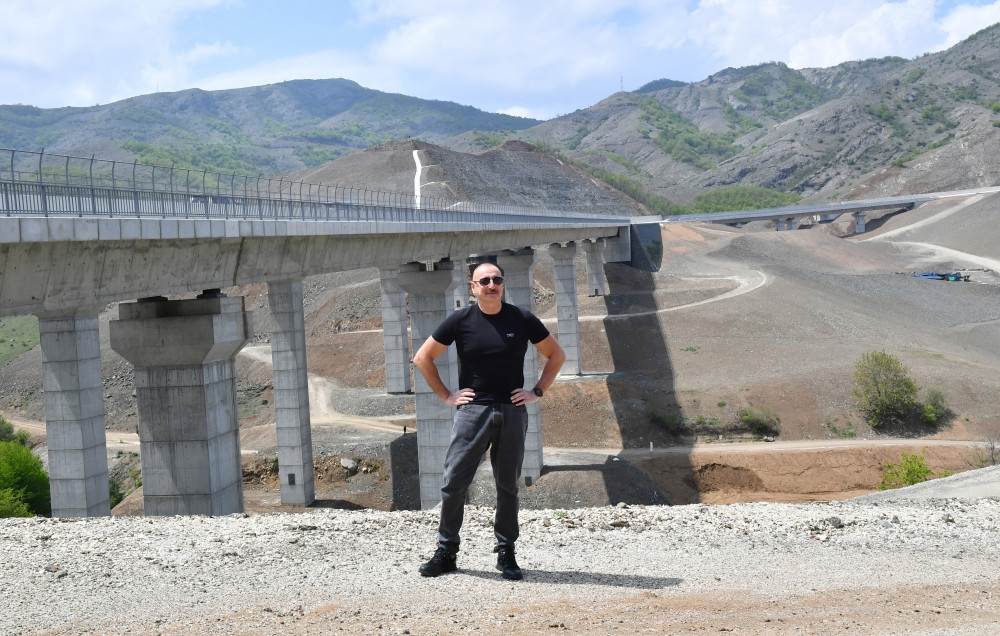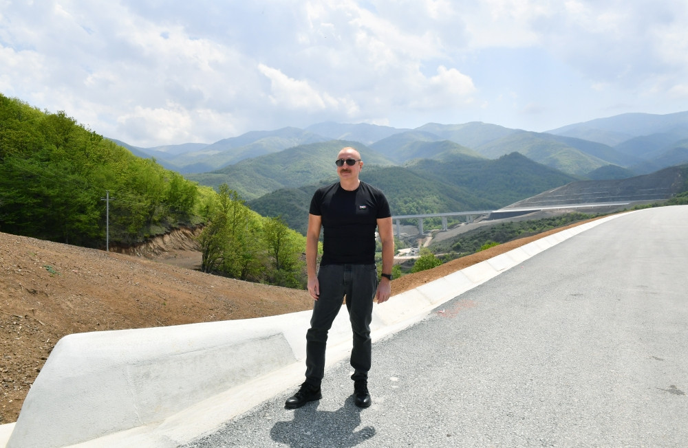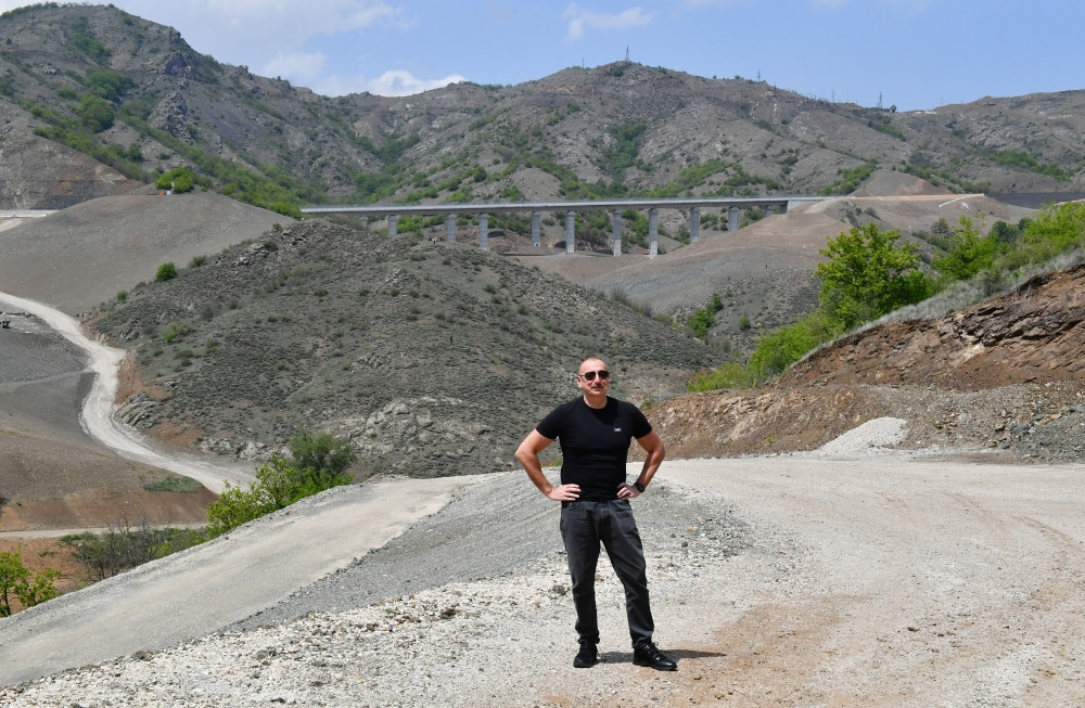 Dövlətimizin başçısı və birinci xanım Əhmədbəyli-Füzuli-Şuşa magistral avtomobil yolunun 66-81-ci kilometrliyində görülən işlərlə tanış olublar.