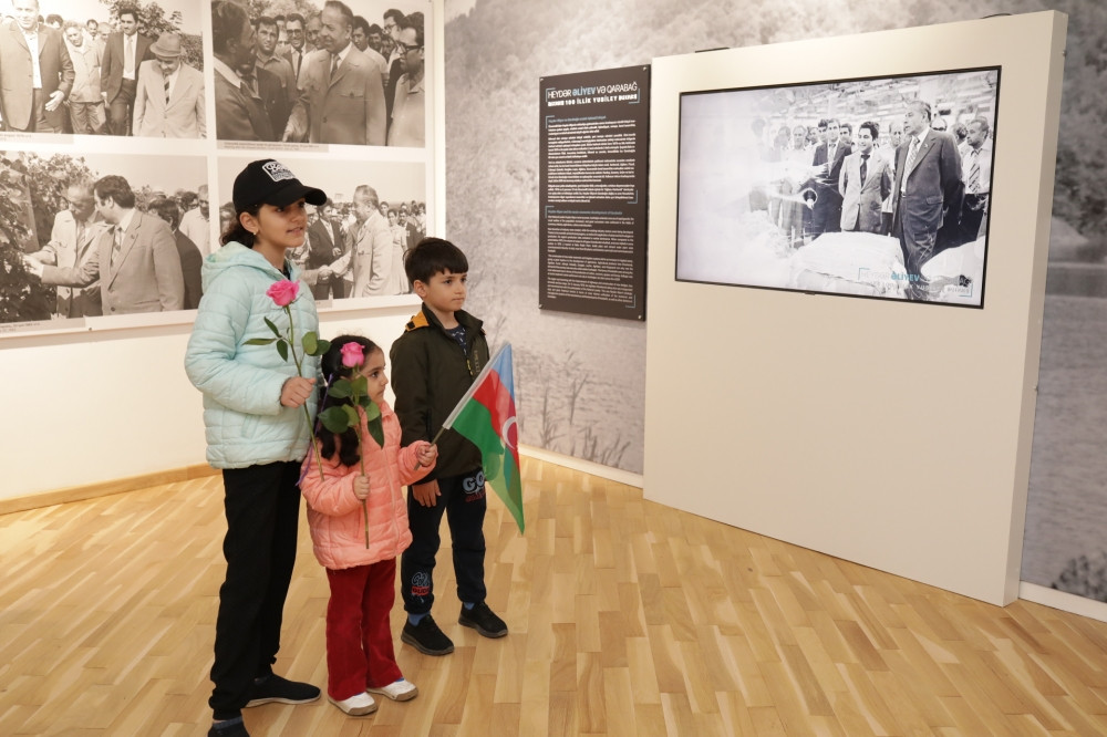 Sərginin ekspozisiyasından aydın görünür ki, Ulu Öndər dünyanın ən qədim mədəniyyət ocaqlarından biri olan Qarabağın tarixini, mədəniyyətini, incəsənətini mükəmməl bilir, böyük diqqət və qayğı göstərərək onun inkişafına çalışırdı. 1969-cu ildən başlayaraq Qarabağ və Şərqi Zəngəzurun tarixində böyük dönüş dövrü başladı. Doğma xalqının böyük təəssübkeşi olan Heydər Əliyev mürəkkəb tarixi şəraitdə bölgədəki həyatın bütün sahələrində geniş islahatlar həyata keçirməyə nail oldu. 1979-cu il yanvarın 12-də Ümummilli Liderin iştirakı ilə “Ağdam–Xankəndi” dəmiryolunun açılışı oldu və istifadəyə verildi. Bu, Heydər Əliyevin Qarabağın dağlıq və aran hissələrinin, Azərbaycanın digər rayonlarının təsərrüfat və iqtisadi cəhətdən daha çox birləşdirilməsi baxımından strateji addımı və böyük tarixi xidməti idi.