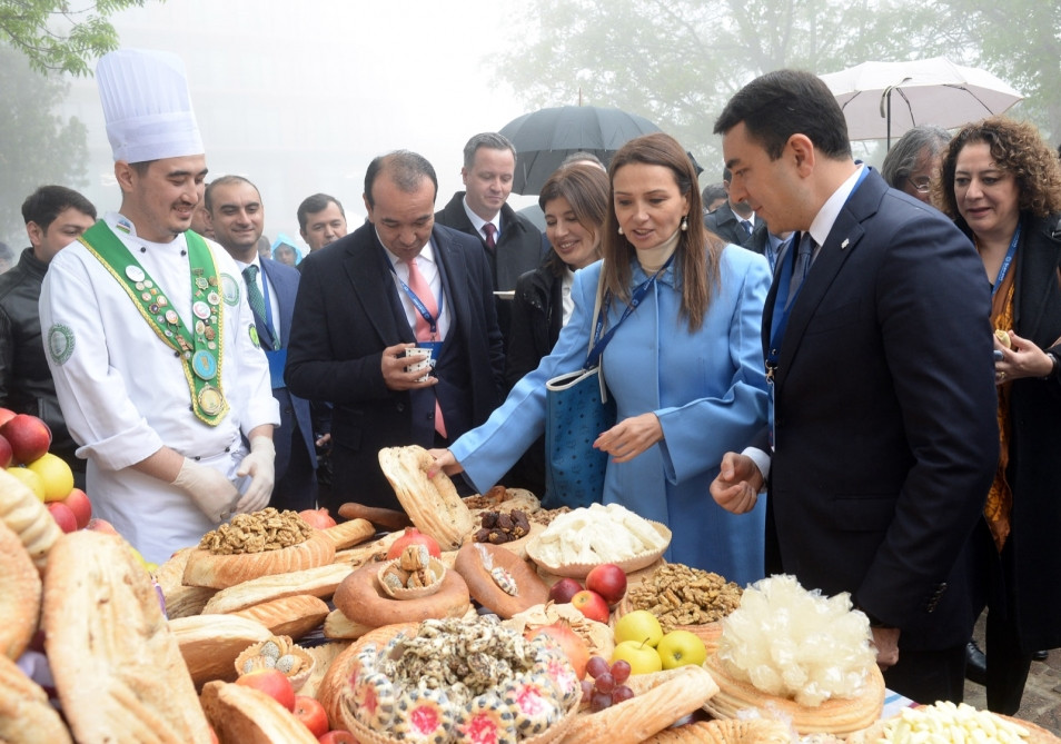 Əvvəlcə qonaqlar “Qarabağ” otelinin qarşısında təşkil olunmuş “Kulinariya və sənətkarlıq” guşəsi ilə tanış olublar.