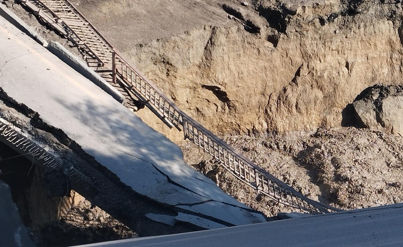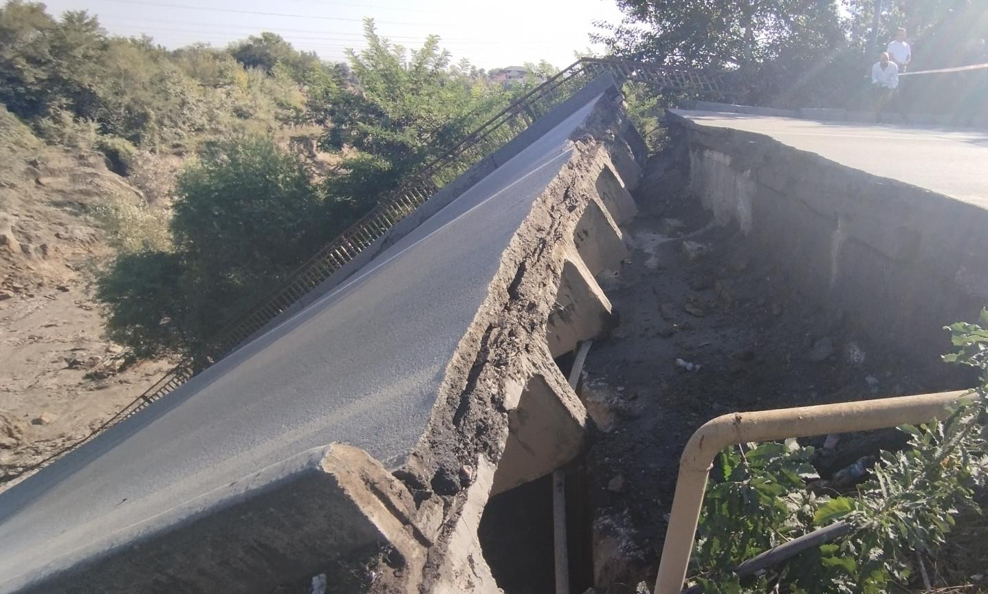 Xaçmaz şəhərindən keçən Qudyalçay çayının üzərindəki körpü tamamilə dağılıb.