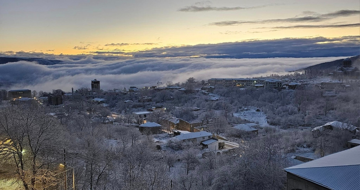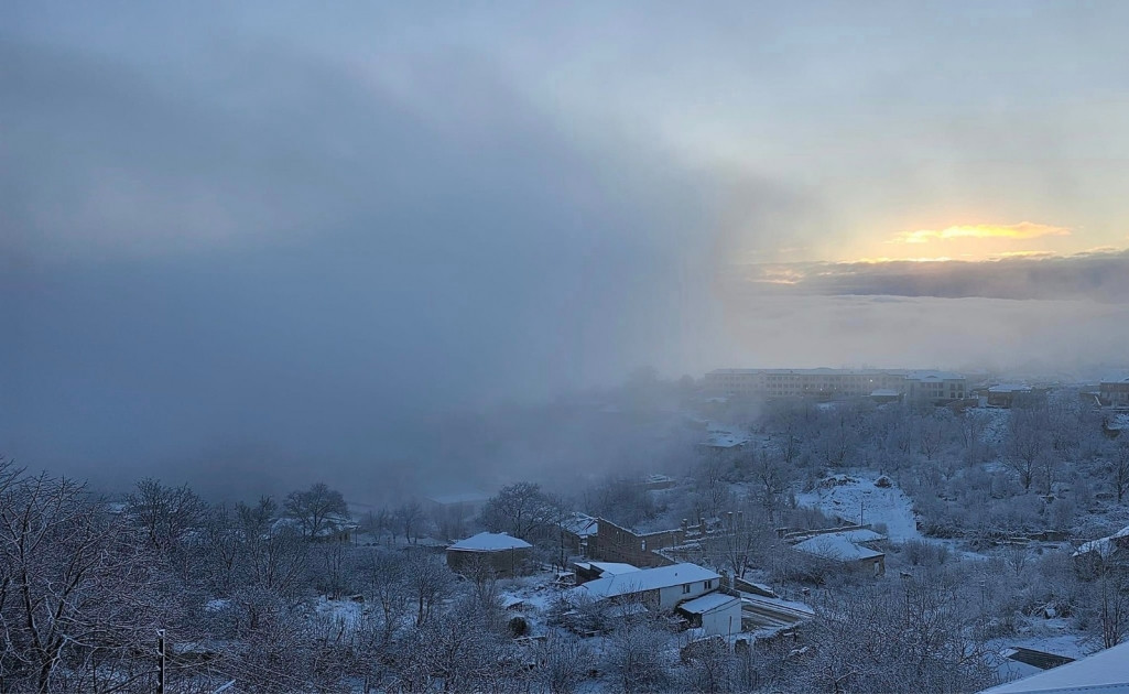 Gecə yağan qar və səhər şəhəri bürüyən duman Şuşanın gözəlliyinə xüsusi çalar qatıb.