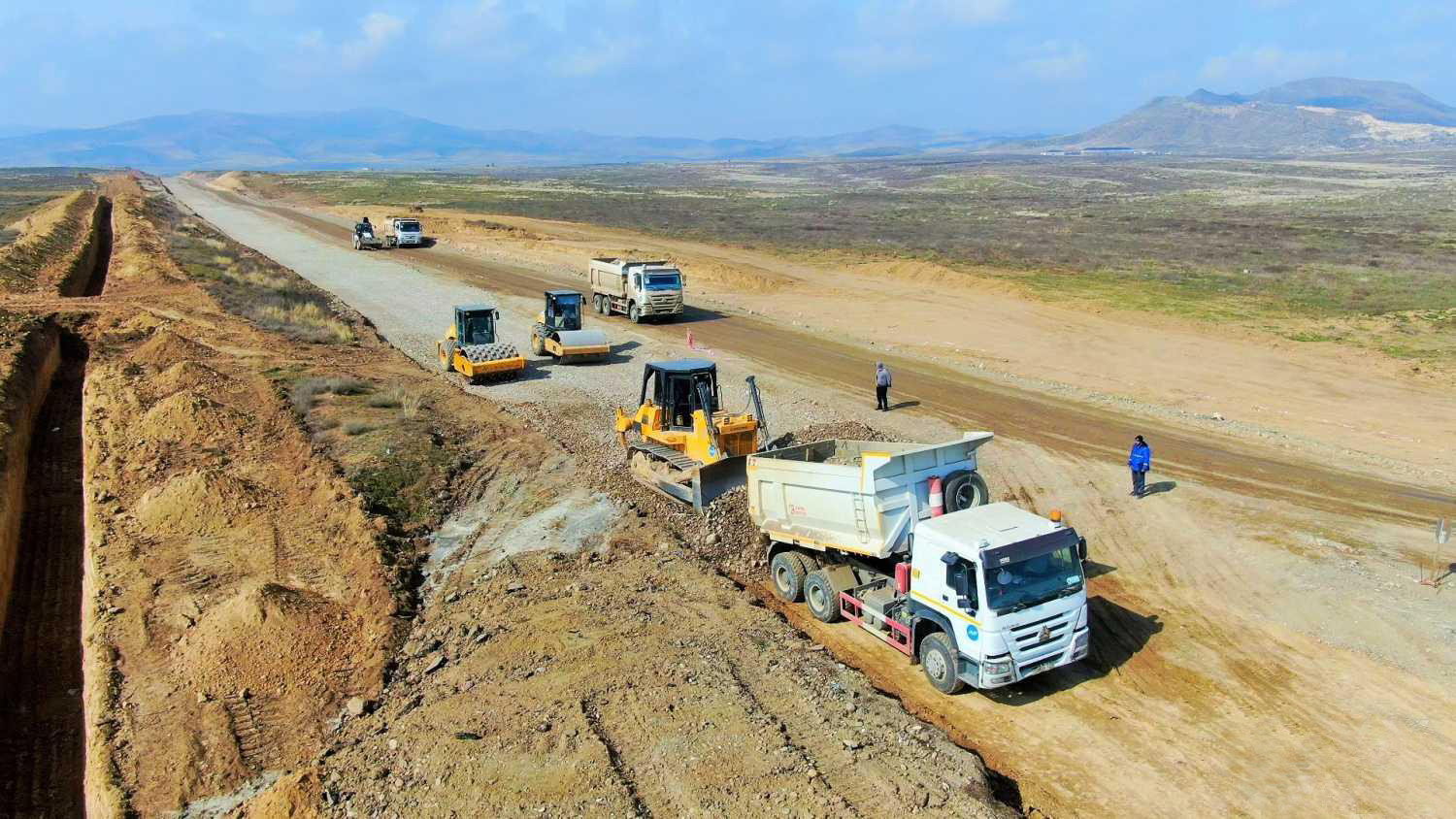 Hazırda avtomobil yolunda layihə üzrə torpaq işləri görülür. Belə ki, xüsusi texnikalardan istifadə olunmaqla yararsız qruntun çıxarılması, yolun genişləndirilərək profilə salınması işləri həyata keçirilir. Bunun üçün tikinti ərazisinə lazımi sayda qüvvə cəlb edilib.