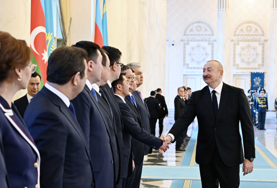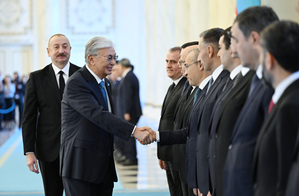 Qazaxıstanın nümayəndə heyətinin üzvləri Prezident İlham Əliyevə, Azərbaycan nümayəndə heyətinin üzvləri isə Prezident Kasım-Jomart Tokayevə təqdim edildi.